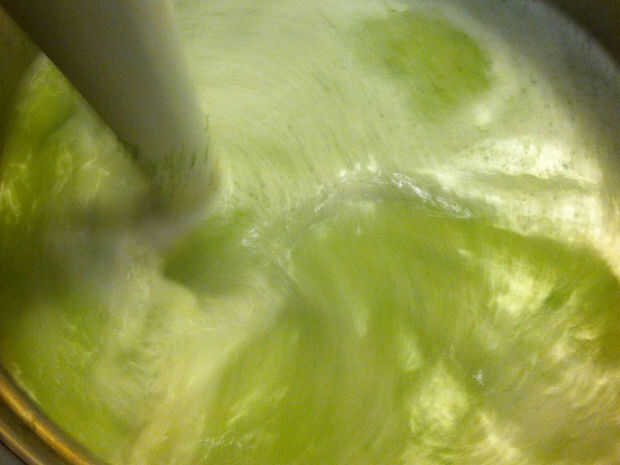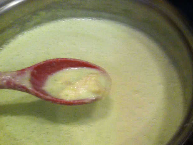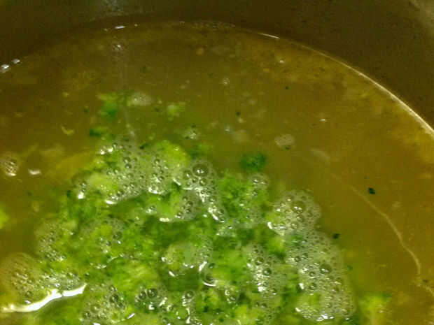 Agregue el roux y mezcle más. Si la sopa está demasiado caliente empezará a cocinar un roux grueso.