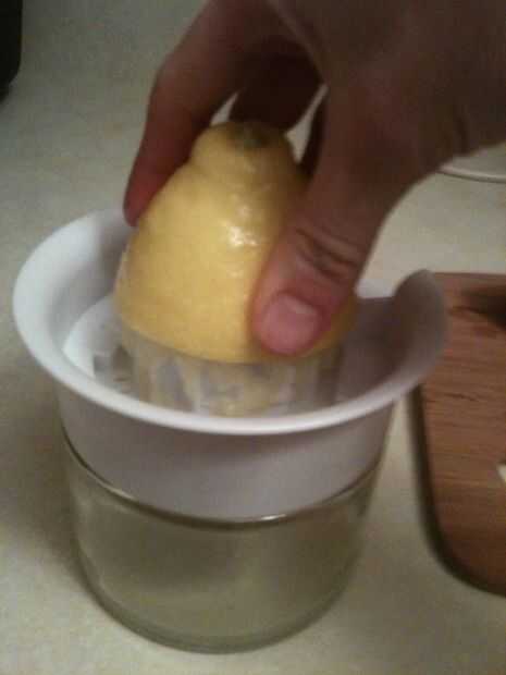 Esperando el pollo cocinar, batir los 4 huevos y el jugo de 1/2 taza de limón en un tazón. (usted puede exprimir los limones o un exprimidor, que es mucho más fácil)