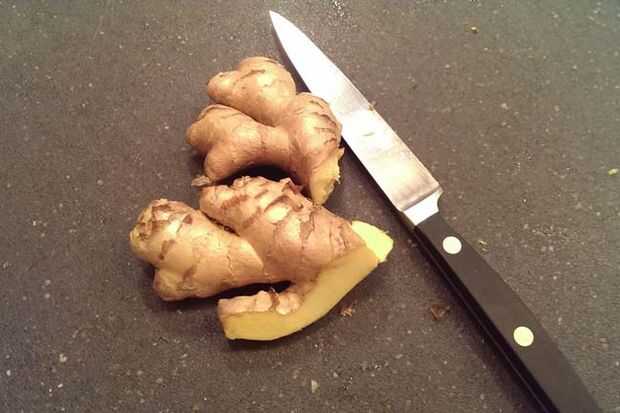 Dependiendo de cómo jengibre pesados quiere la sopa a cortarse los brazos medio uno o dos de una raíz grande de jengibre. Pelar con un cuchillo o pelador y cortar en aproximadamente 1 "x 1/4" astillas.
