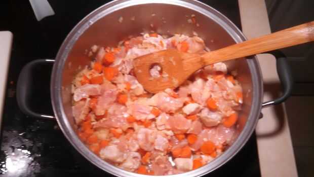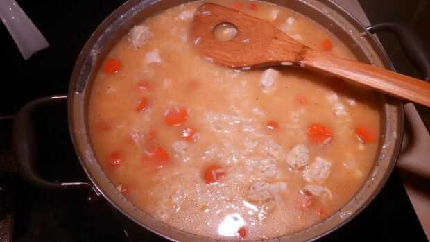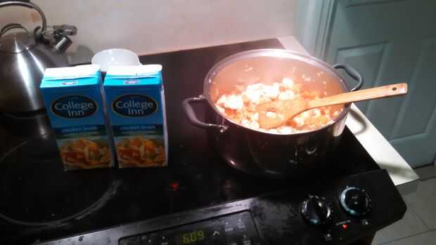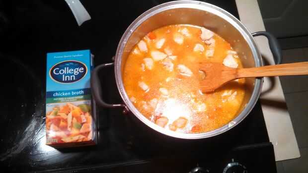 Empezar por primer corte todos los ingredientes que necesitan ser cortados. Cortar las cebollas en cuadritos, engañar y utilizar un helicóptero chef mimados. A continuación que cortado hasta las zanahorias. Añadir las cebollas y las zanahorias (también esto es cuando añado el apio y el pimiento si tuviera algunos) en una olla grande junto con el aceite de oliva y cocinar a fuego alto, revolver con frecuencia. Mientras que cuece corta la pechuga de pollo en mordedura de tamaño. A continuación añadir el pollo a la olla donde se cocina las cebollas y las zanahorias. También agrego en un montón de mis especias sobre este tiempo, pimienta negra, ajo en polvo, sal condimentada y Tony Chachere condimento criollo. Seguir a cocinar a fuego alto hasta que el pollo esté completamente cocido. Las verduras ablandan más de lo que al cocinar con el pollo. A continuación, agregue los dos contenedores de caldo de pollo o de su propia acción que tengas. Seguir a cocinar a fuego alto hasta que el caldo comience a hervir.