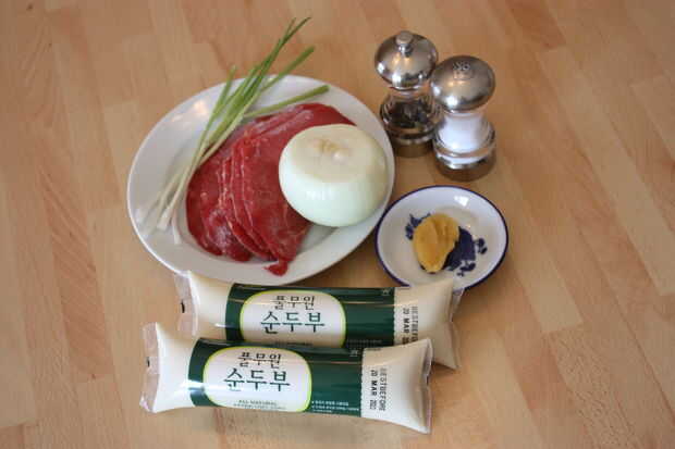 Sopa de queso de soja carne picante Coreano (1 / 7 paso)