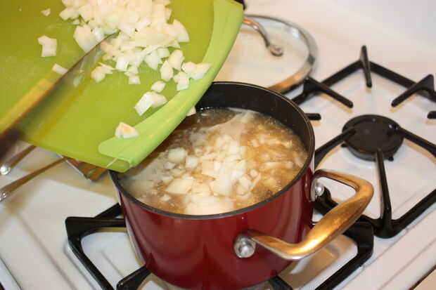 Receta: Para 7,5 tazas = 1875 ml de sopaIngredientes:1 cebolla blanca, pelada y finamente cortada4 dientes gordos de ajo, pelados y finamente cortadalimpia, corte frescos 5 tazas apio verde (hojas y tallo verde) (realmente empujaron los trozos de api
