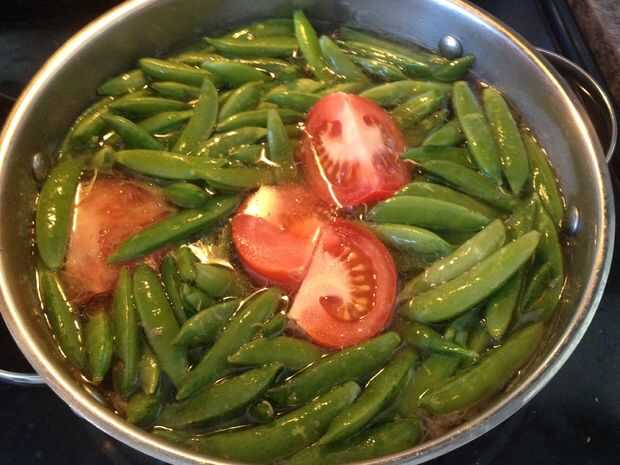 Una vez tiernas, gota en snap peas, revuelva y apague el calor y la cubierta del pote con tapa, dejar reposar durante 5-8 minutos (snap guisantes deben ser todavía algo crujiente pero también algo tierna)