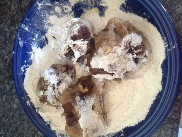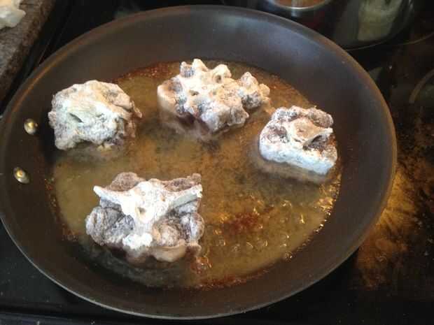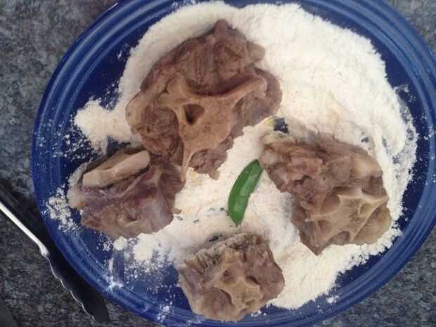 Capa de rabo de buey en suficiente mezcla de harina de harina, ajo en polvo, pimienta blanca molida y sal (si tienes Royco/Vegeta/Masako condimentos, son mucho mejores que la sal solamente)