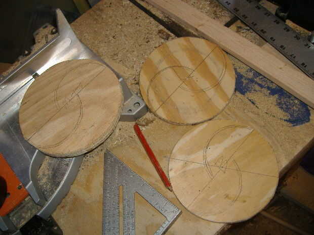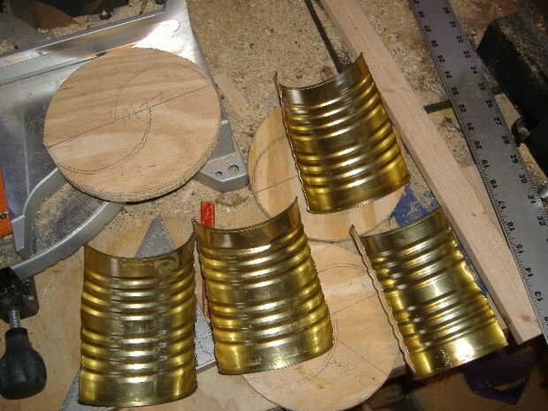 1/4"– 3/8" discos – espesor de madera contrachapada X 3 estaría bien excepto muy pesada. Disolvente estaría muy bien excepto por la capa inferior. Más latas de sopa tendrá un diámetro de turbina acabado de menos de 8 pulgadas.