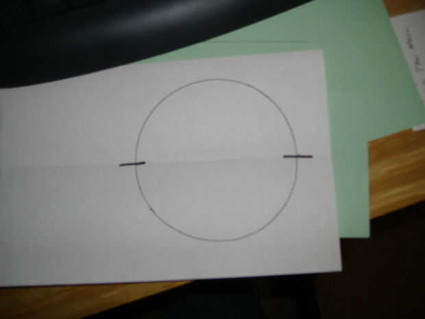 Comer sopa! Hará apenas alrededor de cualquier tamaño pueda. Cuanto más grande mejor. Las latas que usé eran de una sopa de tomate grande. La fueron aproximadamente 4" de diámetro y tal vez de 6.5" de altura. Medir la tuya. Lo mejor es no tiene el fondo redondeado hace que sea difícil de cortar. Con un fondo regular, usted debe ser capaz de usar el abrelatas en la parte inferior. Una vez todos se limpia hacia fuera, coloque sobre una hoja en blanco de papel. Trace un círculo alrededor de la base y lugar sopa puede al lado. Doble círculo resultante por la mitad y marca donde la línea de doblez se encuentra con el borde del círculo.