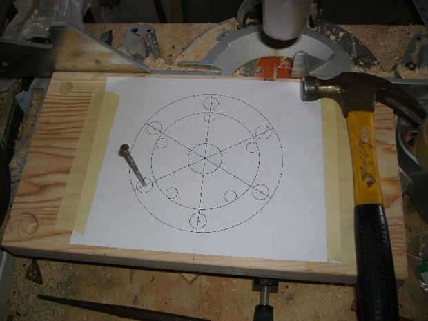 Las bobinas van a ser incluido en la mía en la base 2 x 10. Los imanes van a establecerse en la parte inferior de la turbina. Esa manera con vientos superiores no hay bordes afilados para atrapar si la turbina empieza a tambalearse en los cojinetes. Averiguar un buen radio distancia del centro que no interfiere con cualquier montaje o latas y es ahora suficiente para caber los 6 imanes (o sin embargo muchos tiene). Esto marca en la base y la parte inferior de la parte inferior de la turbina. Marca 6 uniformemente puntos de imanes y marca sin embargo muchas bobinas uniformemente espaciadas eligió. Esto se puede hacer similar a la búsqueda de la mitad del círculo. Trace un círculo en un papel para que coincida con el diámetro de su uso para sus imanes. Luego doble círculo por la mitad y luego por la mitad otra vez. Esto te dará un centro. Use un transportador si usas 6 imanes marcar marcas de 60 grados en el exterior del círculo. Luego este papel en su parte inferior soporte del cojinete del centro y usar un clavo para hacer un punto para que coincida con las marcas que acaba de hacer. Lo mismo para la parte inferior de la turbina.
