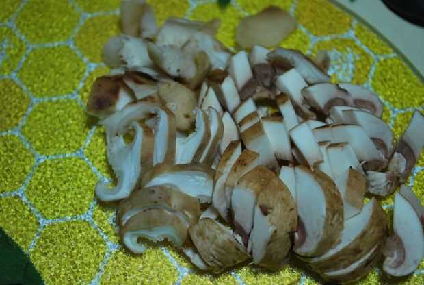 - Dados 1/2 taza de las setas y dejar de lado hasta más tarde