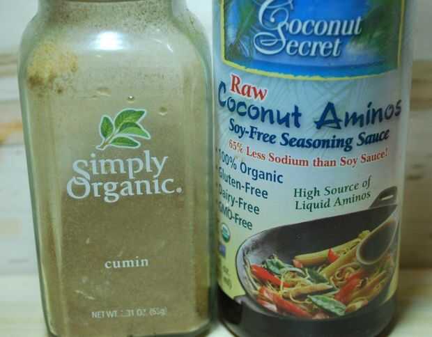 - Añadir el comino, sal y coco amino y mezclar hasta que se incorporó