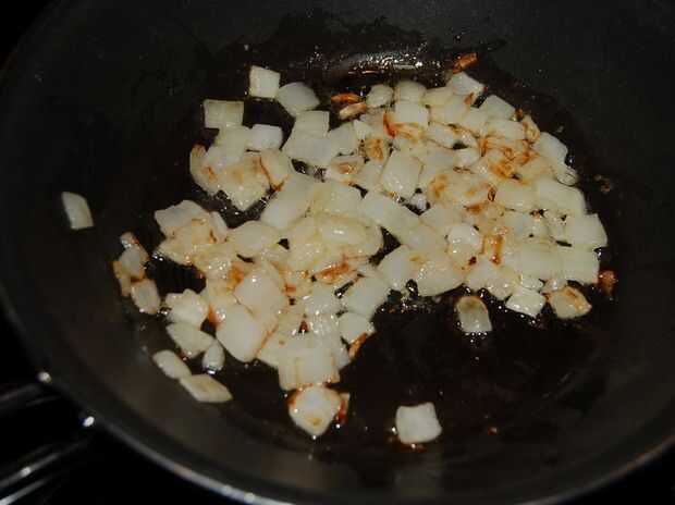 En una sartén con mantequilla y un poco de aceite he frito las cebollas hasta suave y apartarlas.