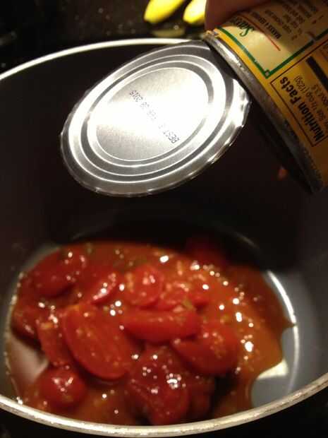 En una olla grande, comenzar a combinar la lata entera de tomates guisados...
