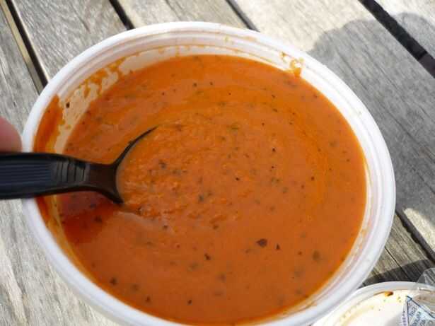 sopa de tomate en un cuenco de panPaso 1: comprar pan en la panadería comprar pan en la panaderíaPaso 2: cortar la parte superior corte la parte superiorPaso 3: quitar el relleno de pan quitar el relleno de panPaso 4: Ahora ponga la sopa en el recipi