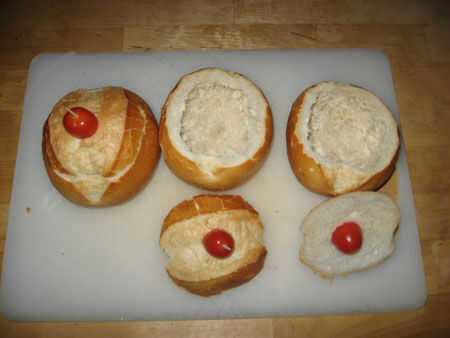 son cuencos de pan - servirlas con Chili, sopa, guisado, curry, cacerola o lo que gustes - comer el relleno, y luego comer el plato!Son comestibles - son pan- ible.Vajilla completamente consumible - un convite sabroso, tostado.La receta para la masa