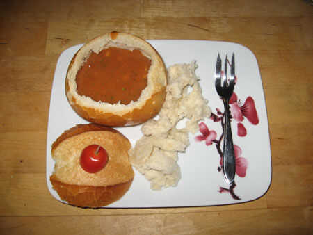 Sopa de tomate en un cuenco de pan (4 / 5 paso)