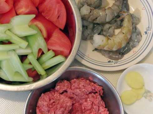 Esto también es el momento de salpimentar la carne de tierra. Espolvorear un poco de sal y azúcar (yo diría aproximadamente 1/2 cucharadita) y añadir aproximadamente 1 cucharadita de aceite de oliva y salsa de ostras (cada uno).