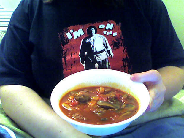 mi madre solía hacernos esta barata, llena y picante sopa bastante regularmente. Ahora lo uso como una cena rápida en una noche fría o un almuerzo ligero calentamiento.Realmente no puedo recordar su receta exacta, pero siempre es bueno experimentar y