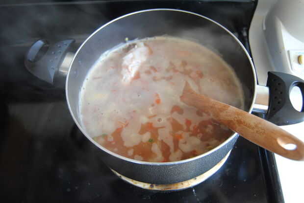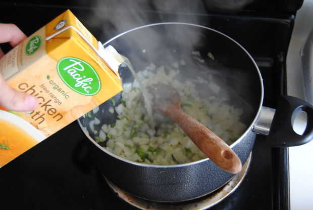 Lo carbohidratos Lo grasa Gluten libre reconfortante y delicioso!En olla grande, combine los 3 primeros ingredientes; Hacer hervir;· 4 tazas de caldo de pollo bajo en sodio, if mejor hechos en casa· 2 tazas de agua· 1 cebolla amarilla grande, cortado