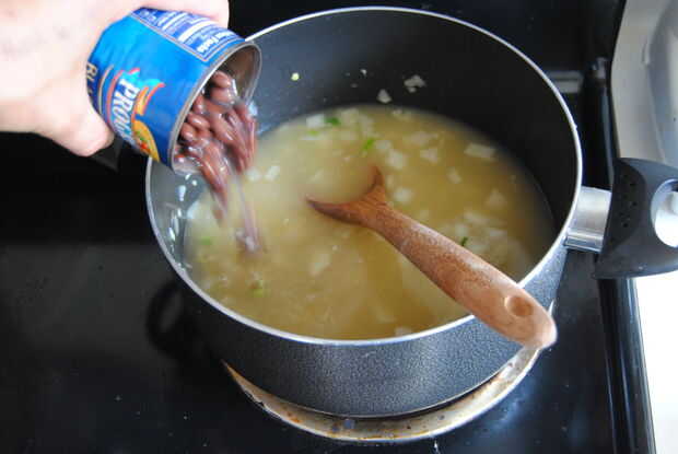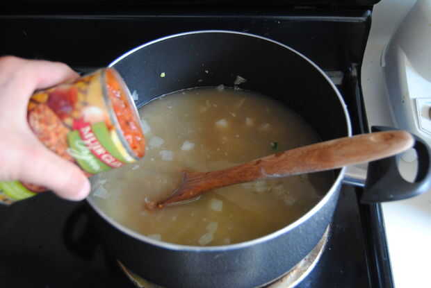 una rápida y fácil receta para una deliciosa sopa. Ideal para estudiantes, partir de cocineros, o cualquier persona con poco tiempo para cocinar.Equipo:Olla de 4 qt con tapaCuchara de mango largoAbrelatas de poderCuchillo del cocineroTablero de corte