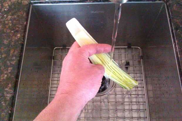 Cortar y limpiar los puerros: