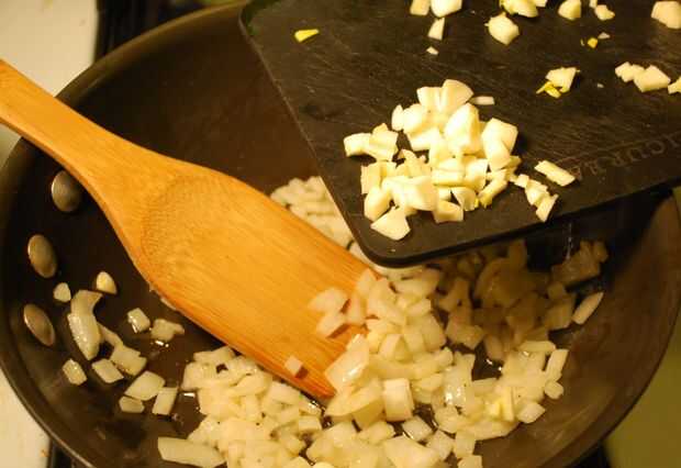 • Agregue las cebollas y cocine hasta que estén casi transparentes