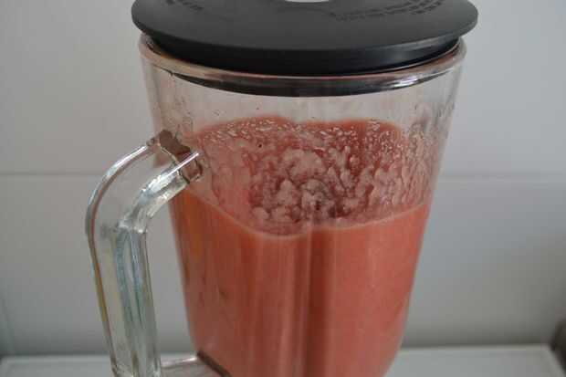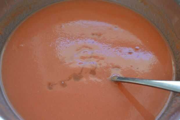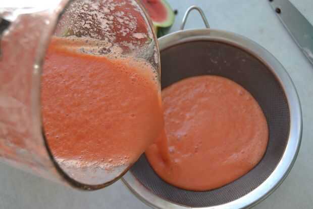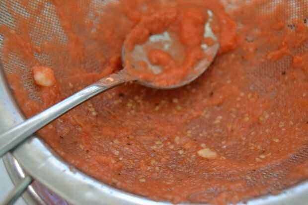 fíltrela a través de un colador para deshacerse de todas las semillas de tomate y melón se coló allí manera en ningún ajo que no estaba bien hecho puré.