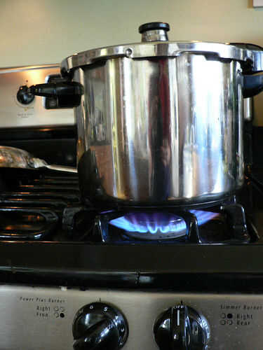 Si tienes una olla a presión, calor alto til la cosa en la parte superior jiggles, girar hacia abajo a bajo y cocine durante 6 minutos.