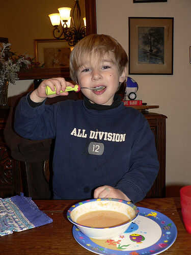 Para mi particular niño exigente, llamamos esta "sopa de queso", porque es cursi en color, y después espolvorear el queso en la parte superior, tiene un agradable sabor queso.