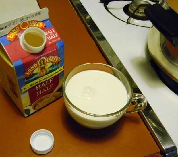 1 taza de mitad y mitad, o leche entera o leche descremada