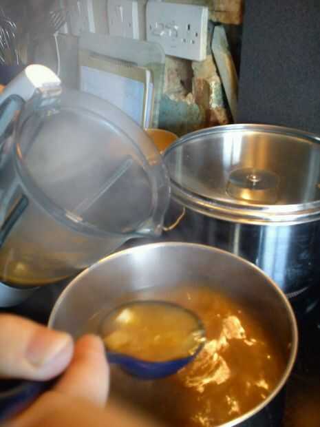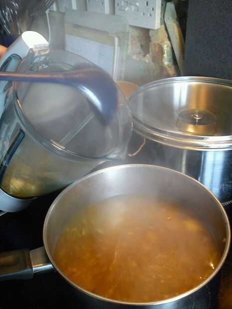 después de 15 minutos vierte la sopa en una licuadora y mezcla hasta que esté cremosa y suave. luego viértalo en un recipiente diferente para calentar a través de. Usted puede revolver en crema si lo deseas pero no tengo ninguna.