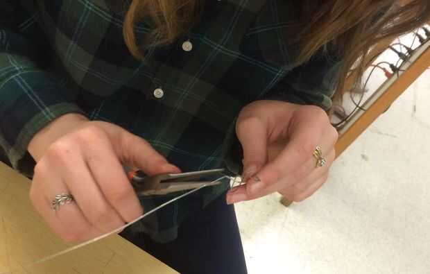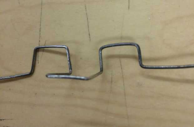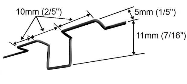 un) curva una percha de alambre. Va a crear tres muescas rectangulares. Consulte el diagrama de las dimensiones.
