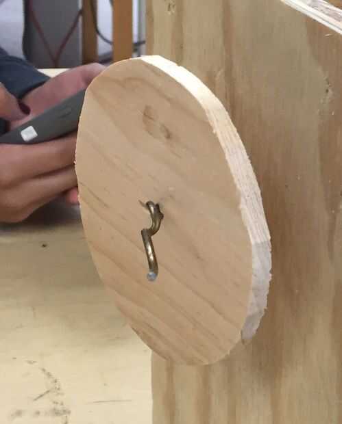 un) cortar un círculo de madera. Nuestra era unos 10 cm de diámetro. Perfore un agujero en el centro por lo que se puede conectar al cigüeñal de alambre.