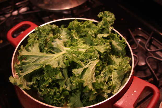 me gustaría sólo añadir aproximadamente 1/3 de la col rizada y guarde el resto para la derecha antes de caliente la izquierda overs para tener algunos semi-crujiente kale en la sopa, así como col rizada cocinada.