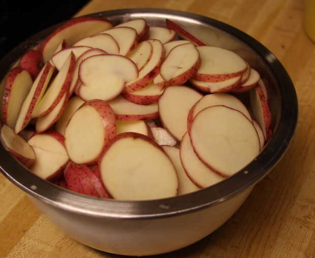 Una de mis sopas favoritas. Es realmente rápido y fácil de cocinar. Todo lo que necesitas:unas patatas,una cebolla,caldo de polloy opcionalmente carne de pollo o salchichas.Paso 1: Cortar las patatas y hervirlas. Más papas - tendrá menos líquido de l