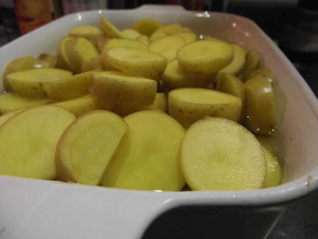 Después de que el caldo se disuelva, añadir en todos sus papas. No sólo verter en, primero de todo que no queremos que el agua que han sentado en todo este tiempo, y también no queremos salpicar el caldo de pollo caliente por todas partes. En su lugar, cuidadosamente colocar las patatas en la olla.