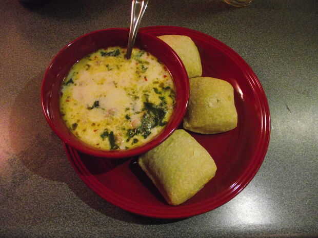 esta es mi opinión sobre una receta de gato copia a sopa de Zuppa Toscana Olive Garden. Es deliciosa y abundante y esta receta es para una olla grande ole de él, así que preparados han dejado excedentes a menos que usted está alimentando a una multit