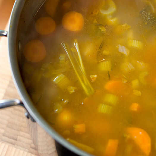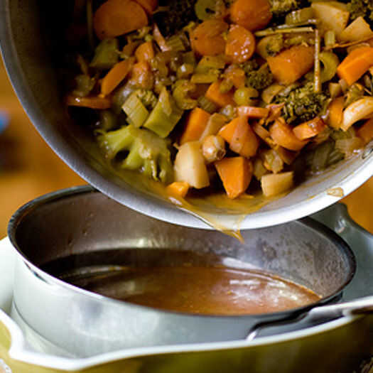 5. pase a través de un paño de queso o tamiz para eliminar vegetales cocidos.