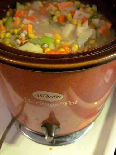 Ahora, puede encender su crockpot baja y cocinar durante 8 horas. Usted puede remover durante todo el día, pero no es necesario. Usted sabrá cuando la sopa está a punto de terminar cuando las habas estén tiernas y se cuecen todas las verduras.