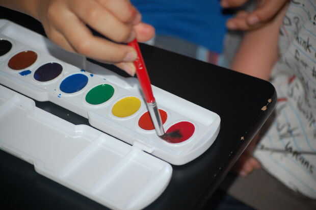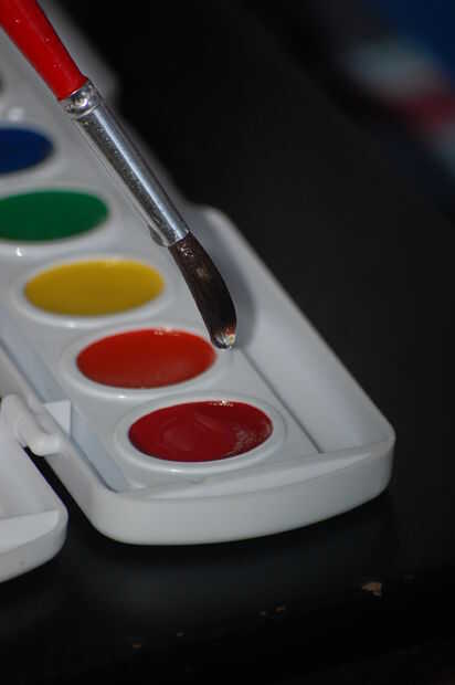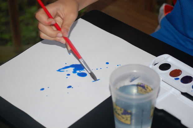 3. sacar la pintura acuosa con su cepillo y dejarlo caer en un blob en el papel. Queremos un buen montón de pintura acuosa para trabajar con