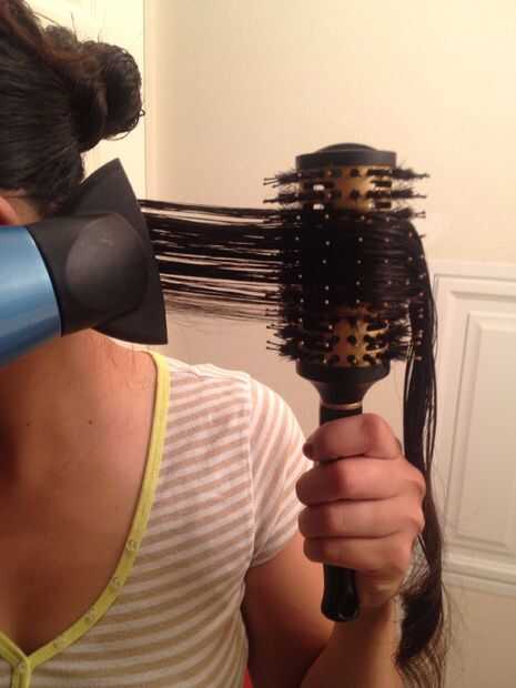 Cepillo la sección con un peine. Luego, coloque el cepillo redondo que el cabello firmemente y con el otro golpe de mano seco lo hacia fuera. Poco a poco correr juntos el cepillo y el secador de pelo. Esto puede tomar unos throughs ejecución para se seque. Recuerde que usted quiere hacer que su cabello esté completamente seco y no hay que perderse cualquier zonas húmedas o tu pelo tendrá un bache u onda en él.