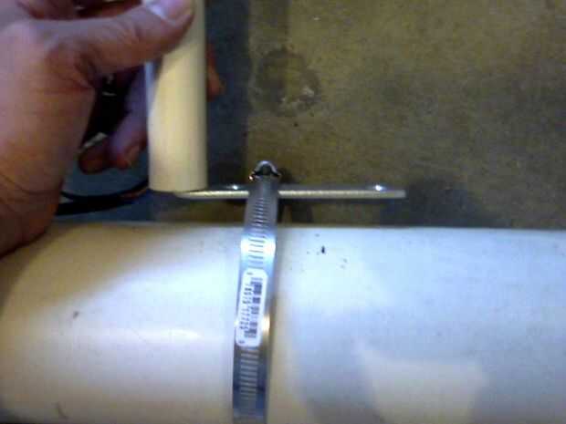 Tomar una de las dos abrazaderas y deslícelo sobre el extremo abierto del tubo. Sostenga el mango en lugar de 9 pulgadas desde el extremo del motor, deslice la manguera abrazadera sobre el soporte, asegúrese de que los cables están descansando en la muesca de la parte inferior y comenzar a apretar la abrazadera de la manguera hasta que quede un buen poco más ajustado.