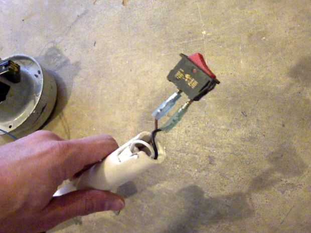 Suelte el interruptor de los cables (tenga en cuenta la configuración de los cables antes de hacerlo), los cables a través de la longitud del tubo, la serpiente en el extremo inferior de la tubería, con los cables de conmutación que sale del extremo superior.