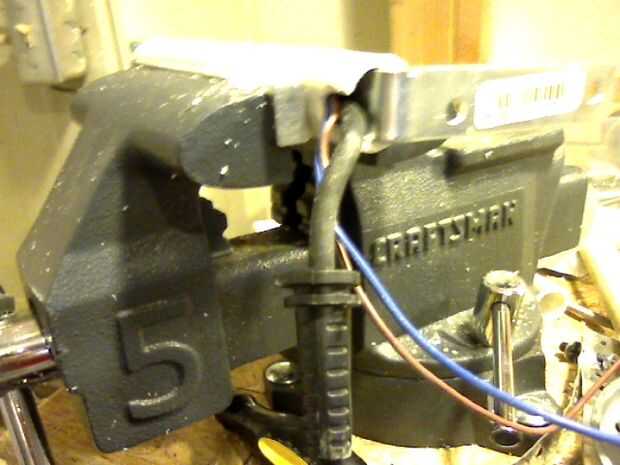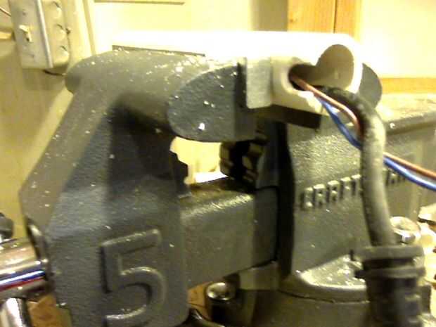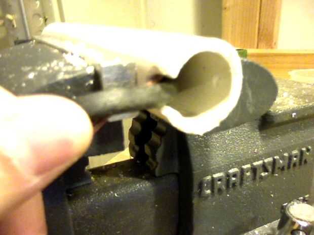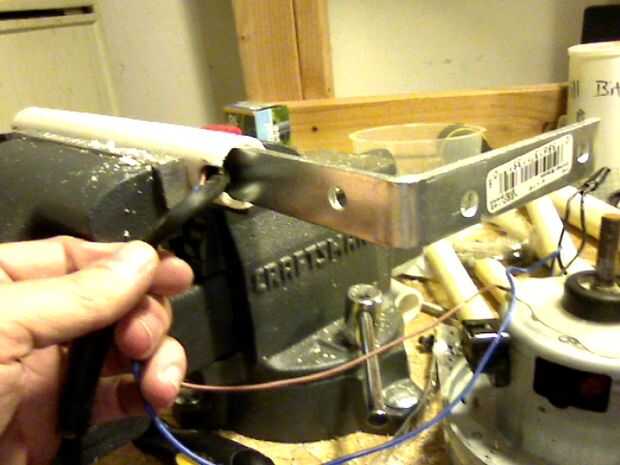 Tenga en cuenta que el soporte está ahora asegurado dentro de la tubería. Asegúrese de que los cables dentro siguen siendo un poco flojo dentro de la tubería.