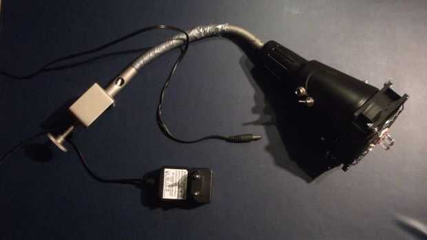• Finalmente encontré que el ventilador con la rejilla de metal en ella es demasiado pesado para el stam flexible de la lámpara. Como una solución rápida y fácil la cubrí con cinta de conducto para pedir prestado cierta estabilidad a la stam.