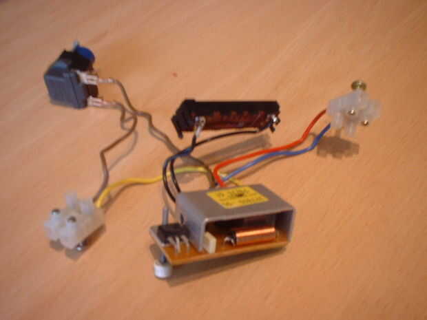 Así que extraje la unidad de motor y ventilador, además el control de velocidad TRIAC, interruptor on-off y la resistencia variable que une en el TRIAC.