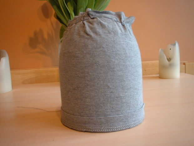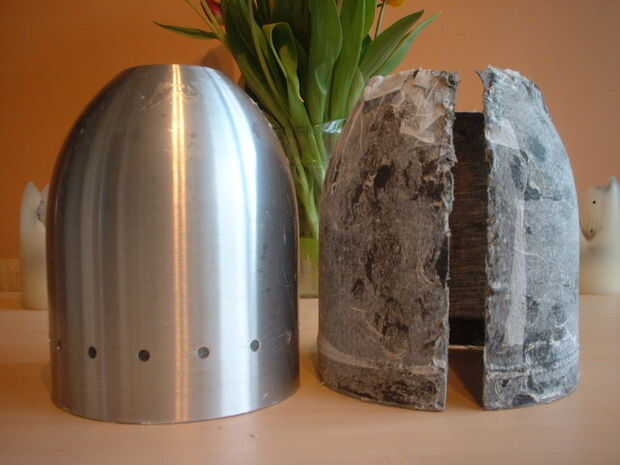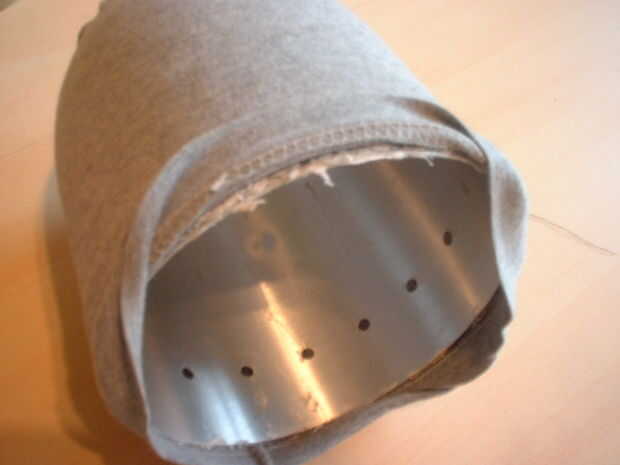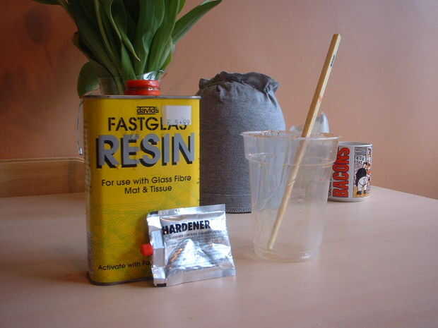 Un pedazo de camiseta fue envuelto y empapado en resina, usando el mínimo de endurecedor. Esto significó que el shell tomó mucho tiempo para definir, pero seguía siendo bastante suave para pelar. Si había utilizado endurecedor más para producir una cáscara crujiente puede bien haber rajado cuando peladura-apagado. Corte de una sierra y un cuchillo embotado eliminado esto muy fácilmente (se ve desagradable porque agregué tejido para absorber roquillas)