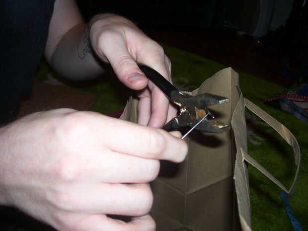 Si el extremo despuntado de su pin es demasiado grande para caber a través del tubo, córtela con el cortador de alambre.