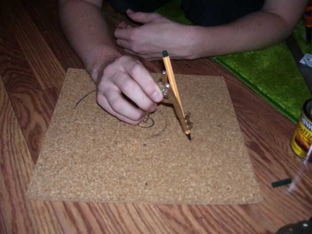Usar un compás y un marcador para crear círculos en su objetivo de corcho.