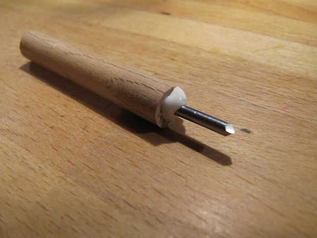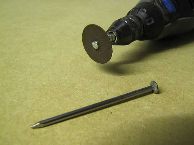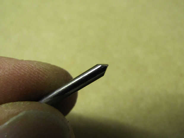 Simplemente corte un clavo (Ø 3mm) y moler la punta al formato adecuado. Basta con mirar las fotos.