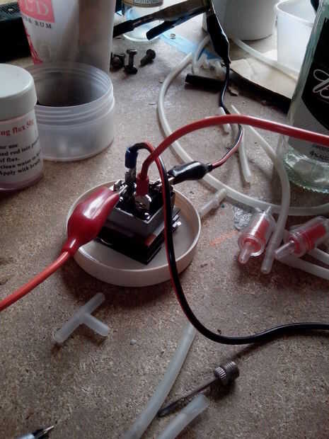 Conectados a través de una sola célula bajé mucho gas, pero también algunas chispas de la interno (muy mal con el gas HHO presente) y calor así que no riesgo utilizando esta establecido.