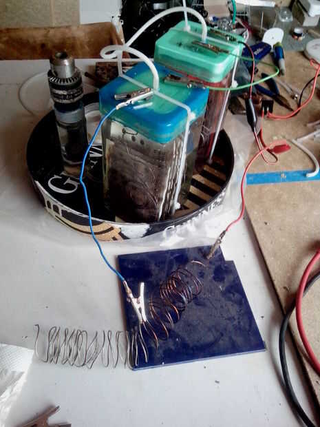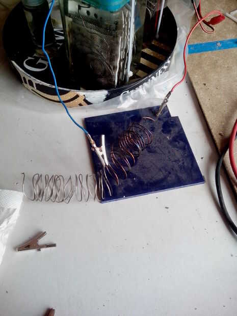 A largo plazo con la tercer célula en serie el voltaje a través de cada célula debe ser cerca de 12v que parece estable, pero mientras tanto en espiral un alambre de los SS y poner en serie con 2 células. La bobina de la longitud total en el cuadro cayó sobre 20 voltios dejando nada ocurre en las células. La conexión hacia la posición media - fotografiada abajo - reducido esta caída de voltaje a sobre 14v dejando un montón de las células. Una buena cantidad de calor se produce cuando se ejecuta e incluso vibra un poco en empezar para arriba.